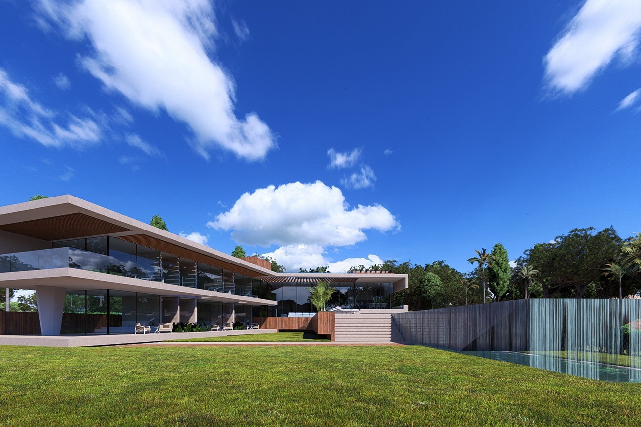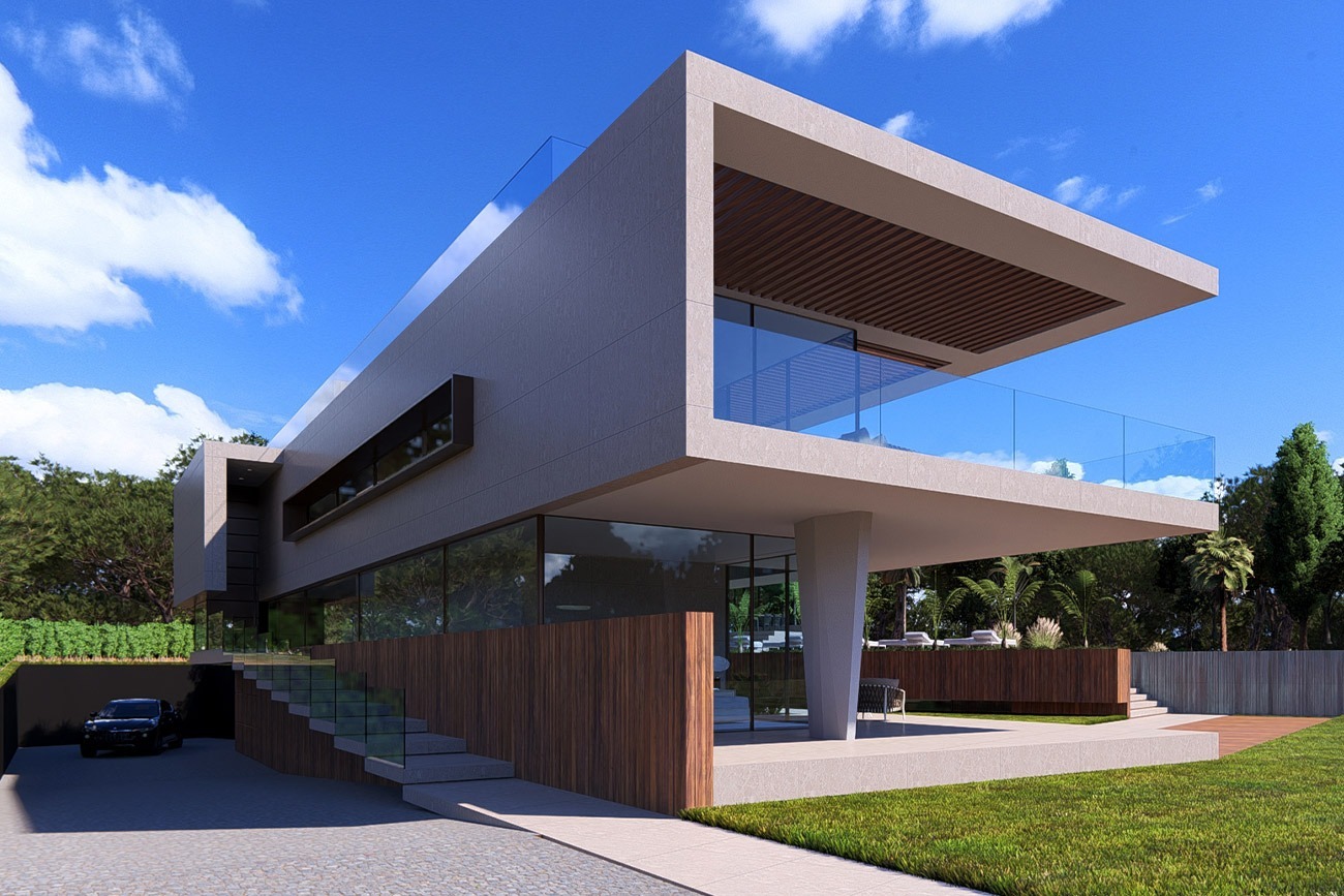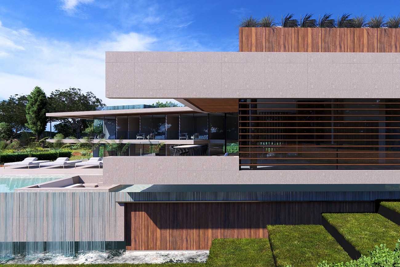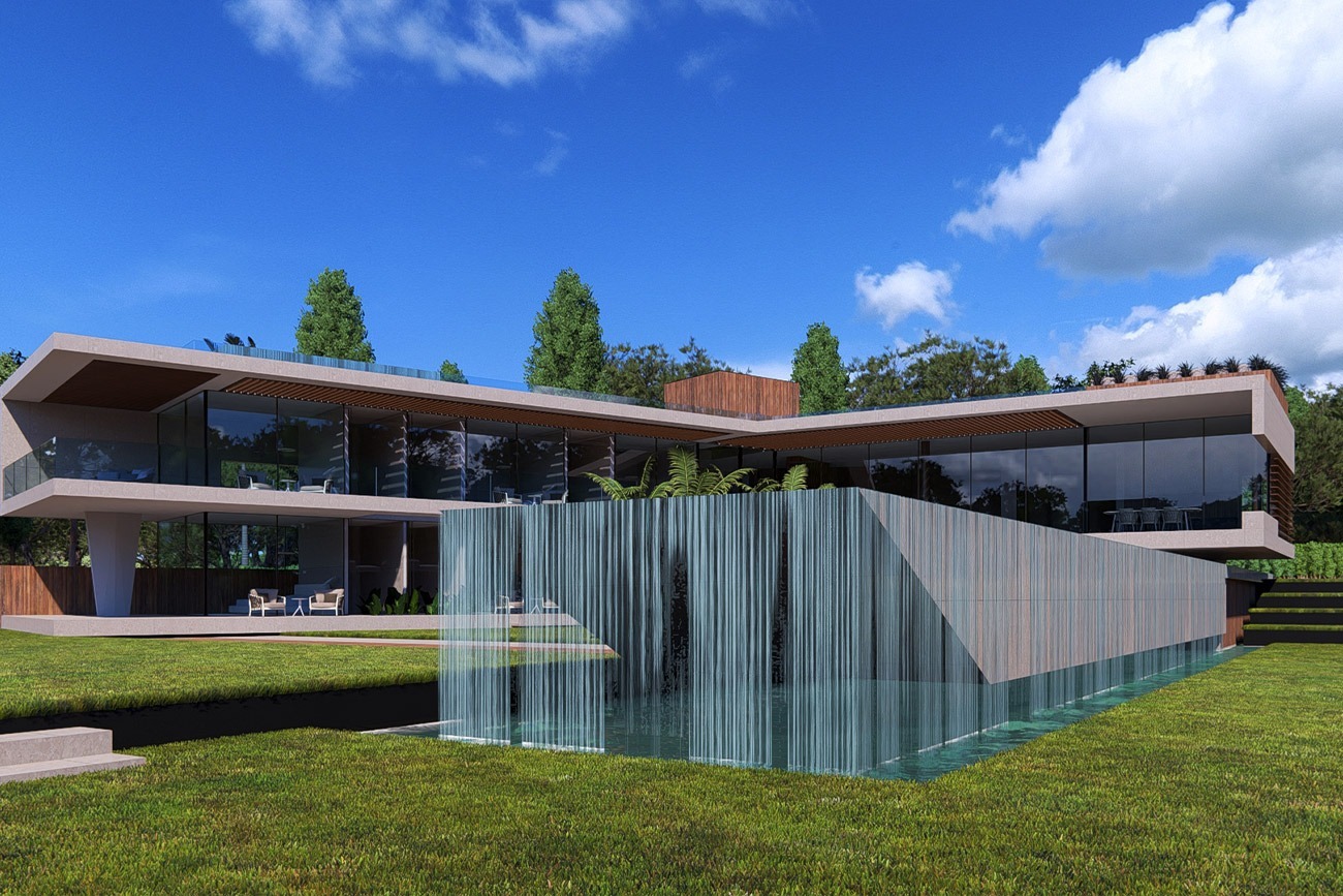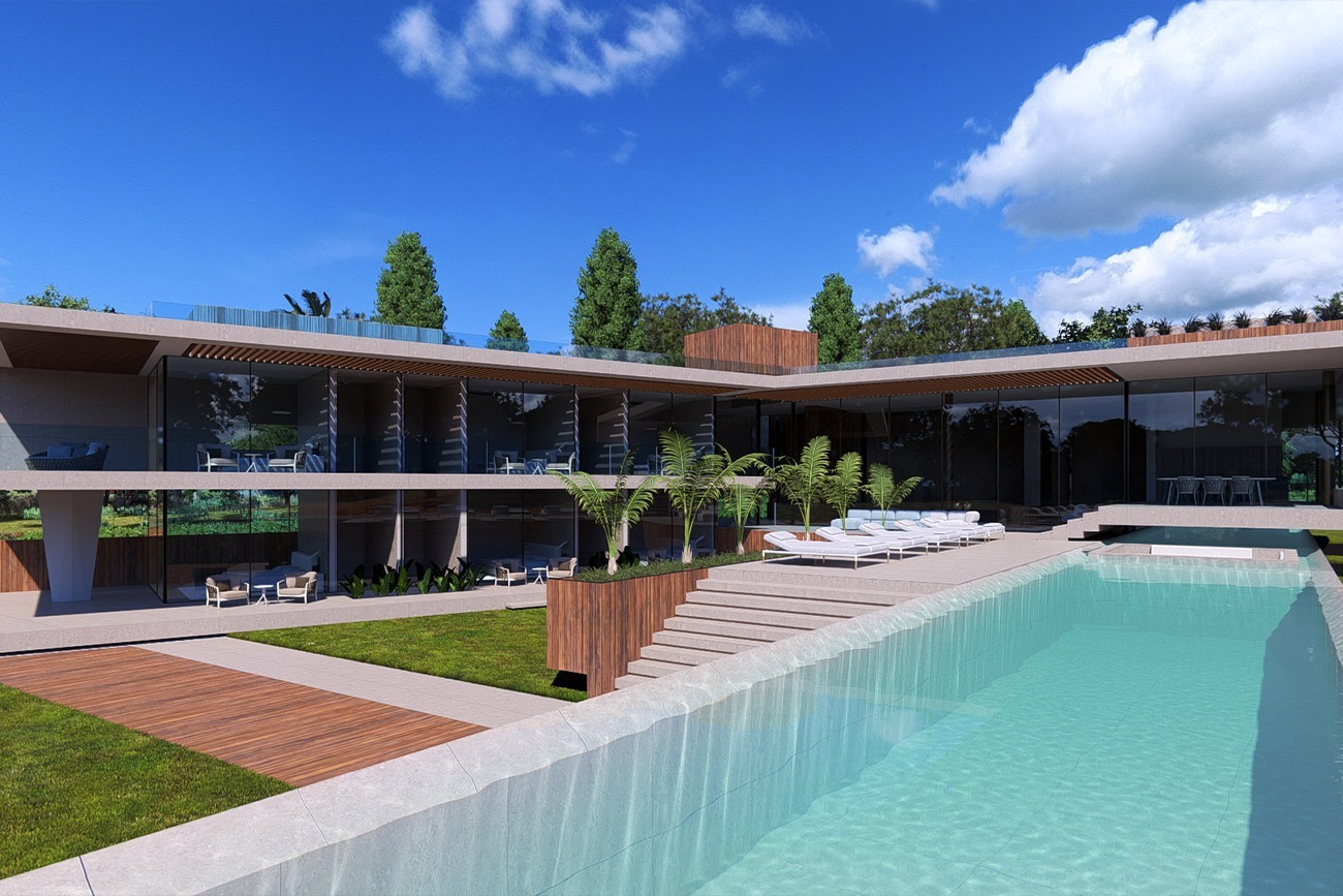 Experimente uma vida luxuosa em Vale do Lobo com este incrível projeto contemporâneo de uma villa de 7 quartos com piscina infinita em cascata.