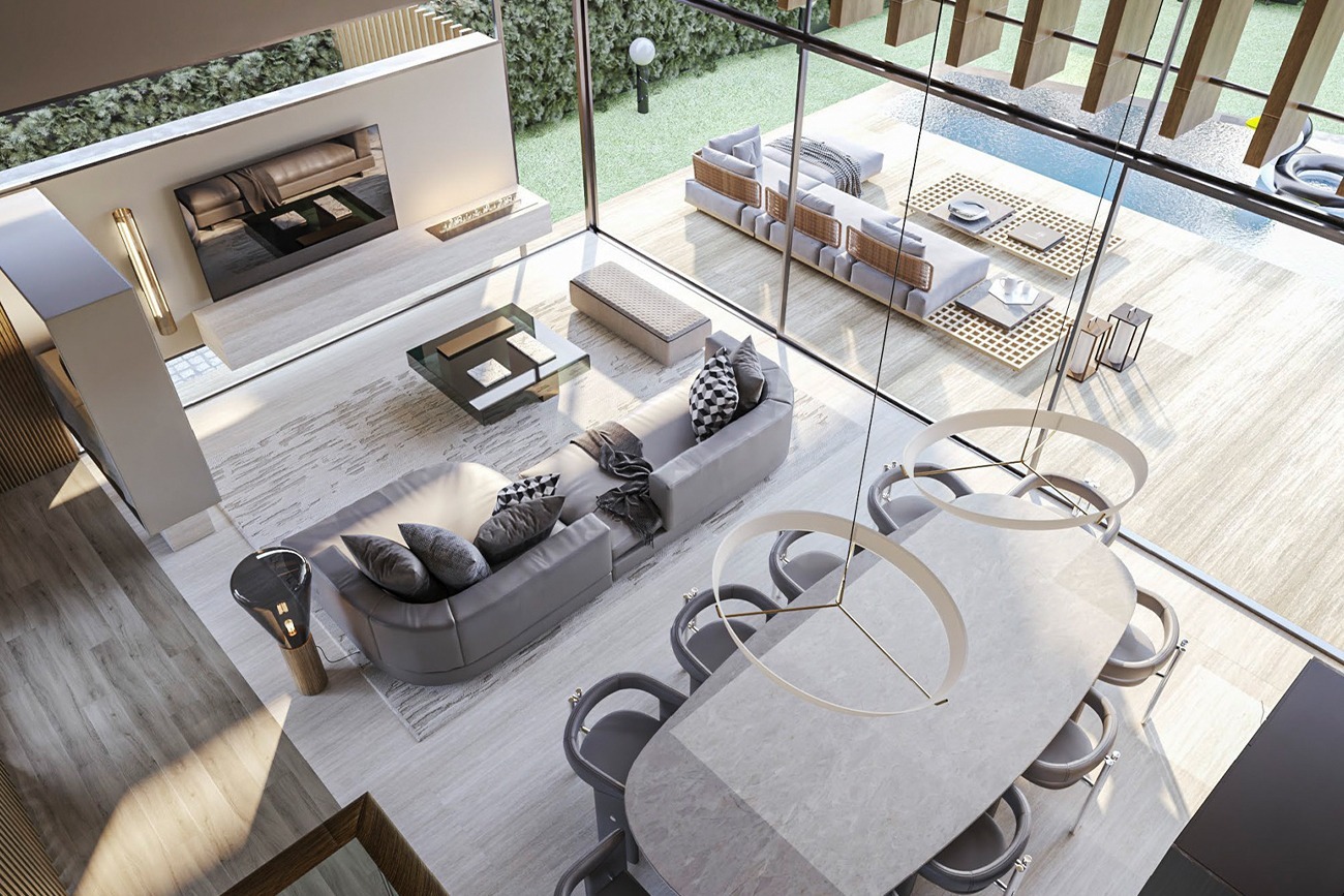 O rés-do-chão é composto por uma luxuosa suite, uma cozinha moderna, sala de estar e jantar em plano aberto, piscina infinita com uma fogueira exclusiva, uma área de refeições ao ar livre e um confortável área de estar. Um churrasco completa o entretenimento ao ar livre experiência.